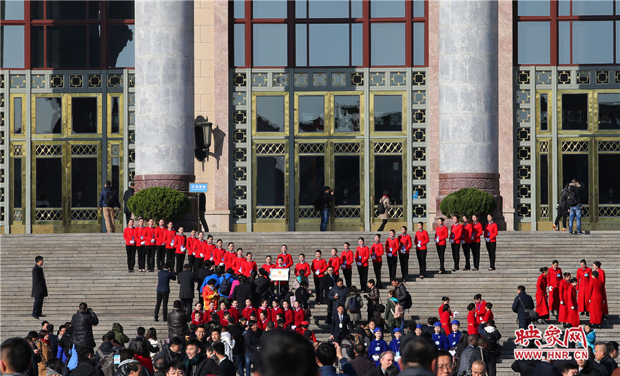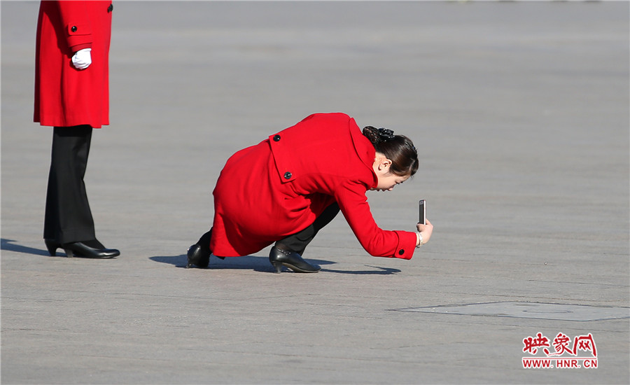 映象網(wǎng)北京訊(大象融媒飛象隊記者 段晉哲 文/圖)2017年3月5日,第十二屆全國人大五次會議在人民大會堂召開。場外的記者、安保人員、服務(wù)人員、保潔人員等都用自己的方式參與其中。他們在天安門廣場上和人民大會堂前,都留下了自己最美麗的身影。