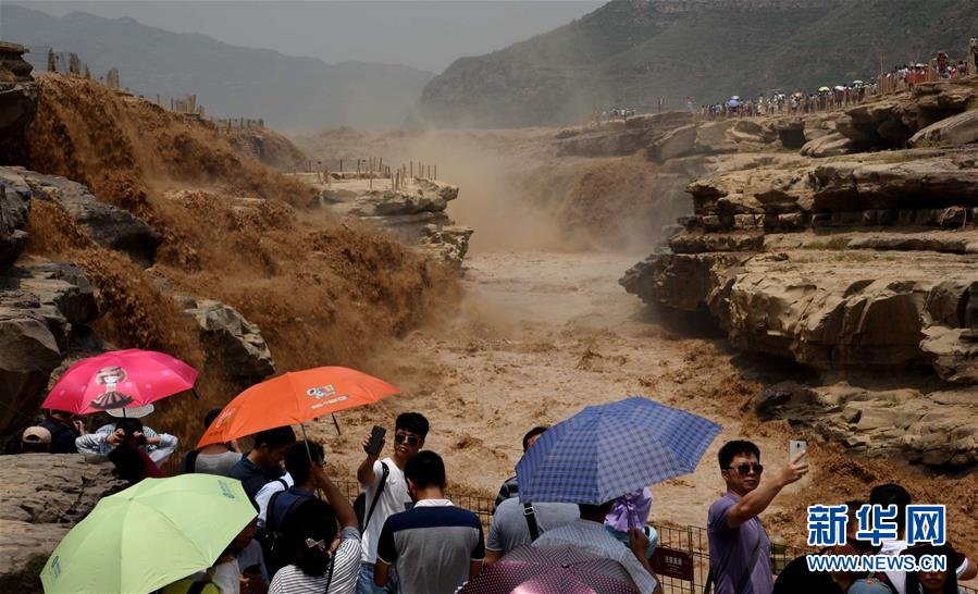 7月26日,游客在黃河壺口瀑布景區(qū)游覽觀瀑。