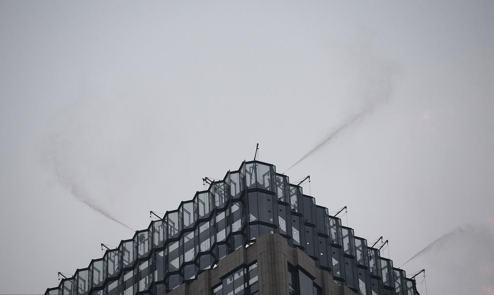 記者注意到,水霧來(lái)源于草叢中的多個(gè)隱形噴頭。這項(xiàng)讓天府廣場(chǎng)有些“仙味兒”的變化,正是成都推進(jìn)大氣污染防治科技治霾的新動(dòng)作——打開(kāi)這個(gè)名為“超細(xì)清水霧系統(tǒng)”的除霾裝置,可以降解距離地面10米以內(nèi)的漂浮揚(yáng)塵顆粒物,起到除霾、降塵、降溫、增加空氣濕度、增加負(fù)氧離子的作用。