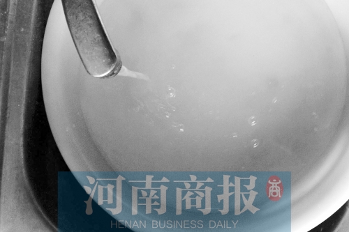 進(jìn)入一居民家后,居民迫不及待地打開水龍頭。河南商報(bào)記者看到,剛從水龍頭里接出來(lái)的水確實(shí)像面湯一樣白稠,放置半分鐘后,水開始變清,再過(guò)一段時(shí)間,接水盆盆底開始顯現(xiàn)出一層紅色的沙子。