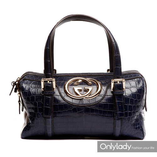 深藍(lán)色鱷魚皮女士手提包