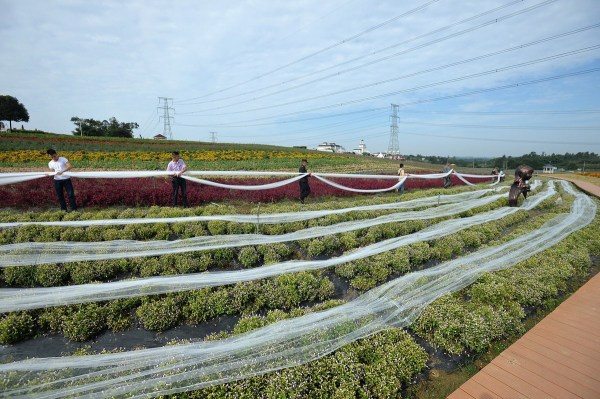 9月24日,為了迎接國慶大假,工作人員在成都一景點(diǎn)內(nèi)擺放一款4100米長的婚紗,該婚紗的拖尾用單層網(wǎng)紗制作而成,寬度1.5米,耗時(shí)一個月,大約花費(fèi)4萬元。成都商報(bào)/東方IC