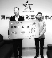 河南省體育彩票管理中心主任孫和平為大獎得主頒獎
