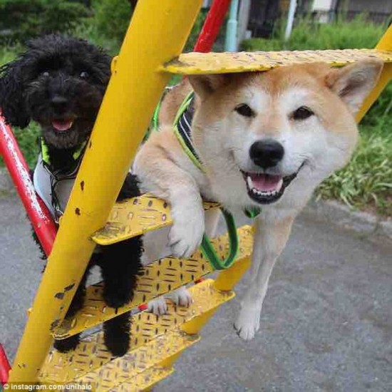Uni-Chan今年6歲,現(xiàn)與主人居住在東京。據(jù)它的主人稱,Uni-Chan每天都會(huì)去戶外散步兩三個(gè)小時(shí),它尤其喜歡高的地方以及各種游樂場(chǎng)設(shè)施。除了蕩秋千,這只小柴犬還喜歡玩蹺蹺板、爬繩子,或是帶著草帽與它的好朋友——一只黑色的貴賓犬嬉戲。