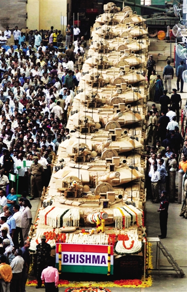 在慶典中印度軍隊(duì)展示T-90坦克。資料圖片