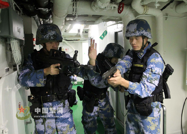 海軍第十一批護(hù)航編隊赴亞丁灣、索馬里海域執(zhí)行護(hù)航任務(wù)以來,針對海況復(fù)雜多變,海盜活動更趨隱蔽、猖獗、頻繁等嚴(yán)峻特點(diǎn),編隊指揮所科學(xué)籌劃護(hù)航行動,研究掌握海盜活動的特點(diǎn)規(guī)律,合理安排值更執(zhí)勤,加強(qiáng)巡邏警戒,狠抓各項制度落實,搞好預(yù)想預(yù)測,完善多套方案預(yù)案,著力提高快速反應(yīng)能力。在查證、驅(qū)離疑似海盜船只時,確保預(yù)先發(fā)現(xiàn)、快速反應(yīng)、掌握主動,把兩個“百分之百”要求落到實處。圖為3月下旬編隊實施護(hù)航行動時的一組場景。