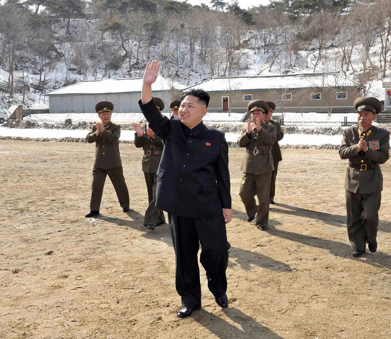 這張朝鮮中央通訊社2012年4月5日提供的照片顯示,朝鮮最高領(lǐng)導(dǎo)人金正恩近日視察了駐守東部海岸前方哨所的麗島防御部隊。