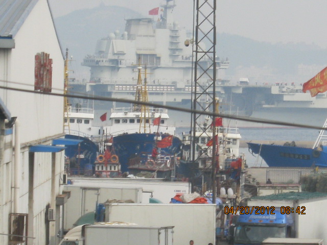 中國(guó)航母瓦良格號(hào)目前正在大連準(zhǔn)備第5次和第6次試航,圖為試航回航時(shí)的現(xiàn)場(chǎng)。