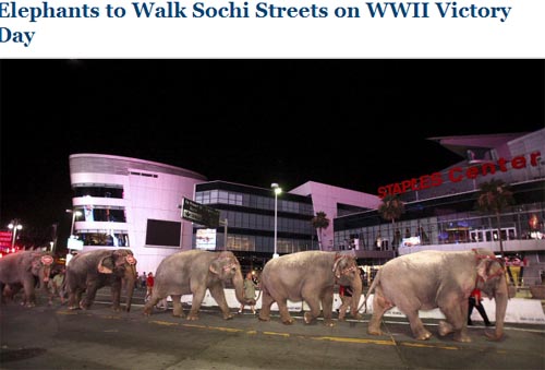 據(jù)俄新社報(bào)道,俄羅斯國家馬戲公司日前透露,為了慶祝衛(wèi)國戰(zhàn)爭勝利67周年,來自俄羅斯一著名馬戲團(tuán)的象群將于5月6日在索契的大街上巡游。
