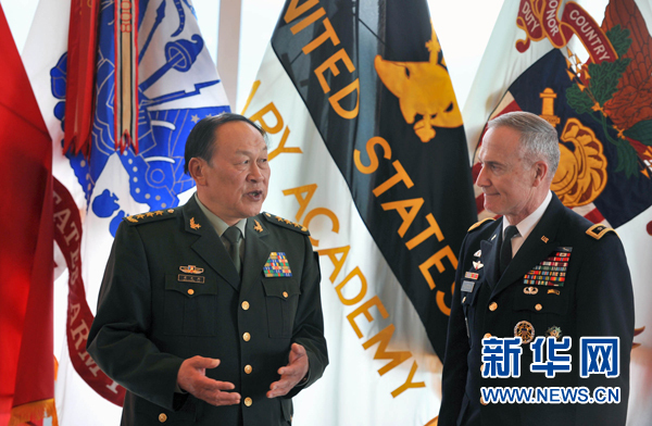在西點軍校圖書館舉行的贈書儀式上,梁光烈表示,此次訪美非常成功,非常順利,達(dá)到了預(yù)期的目的。他說,通過訪問,推動了胡錦濤主席和奧巴馬總統(tǒng)關(guān)于發(fā)展兩國兩軍關(guān)系達(dá)成的共識,增進(jìn)了了解,加強了互信,推動了合作,也見證了美國國防和軍隊建設(shè)取得的成就,為我們提供了很好的學(xué)習(xí)機會。