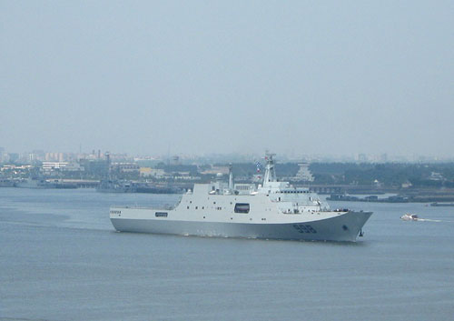 1.8萬噸的“昆侖山”號船塢登陸艦,僅該艦噸位就接近菲律賓軍艦的噸位總和。(資料圖)