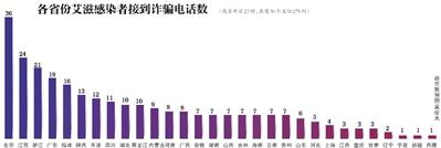 根據(jù)白樺的統(tǒng)計(jì),截至昨日晚上,北京、江蘇、浙江三地接到詐騙電話的感染者人數(shù)最多,分別為36個(gè)、24個(gè)和21個(gè)。北京的兩位感染者和甘肅的一位感染者分別被詐騙3000元、2300元和700元。