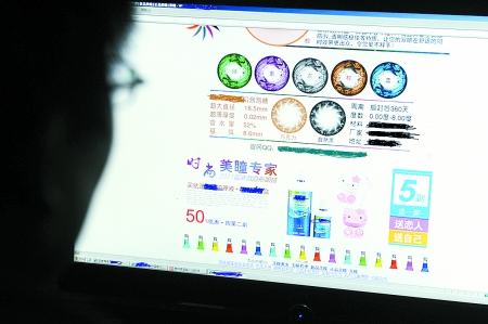 昨日,記者在鄭州多家眼鏡店發(fā)現(xiàn),店內(nèi)都有彩色平光隱形眼鏡銷售,價格從30多元到200多元不等。一些店員表示,臨近春節(jié),“美瞳”銷售情況特別好,購買者主要是年輕女孩,戴“美瞳”只要注意消毒,對眼睛沒有損害。而在網(wǎng)上,專售“美瞳”的網(wǎng)店也有不少,一款一片賣價160元的“美瞳”,顯示已售出142件。