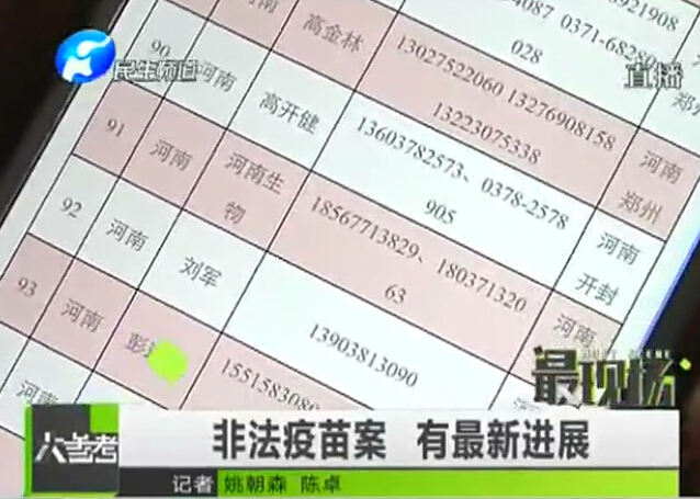 非法疫苗案 河南涉及24條上線