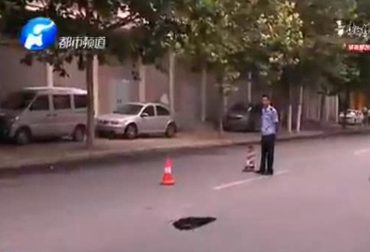 • 路面突現(xiàn)一小洞 內(nèi)藏2米大坑
