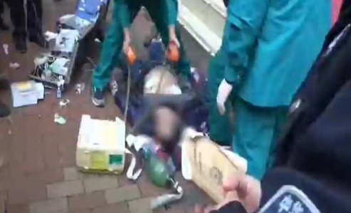 老人路邊遛狗摔跤 心臟停跳