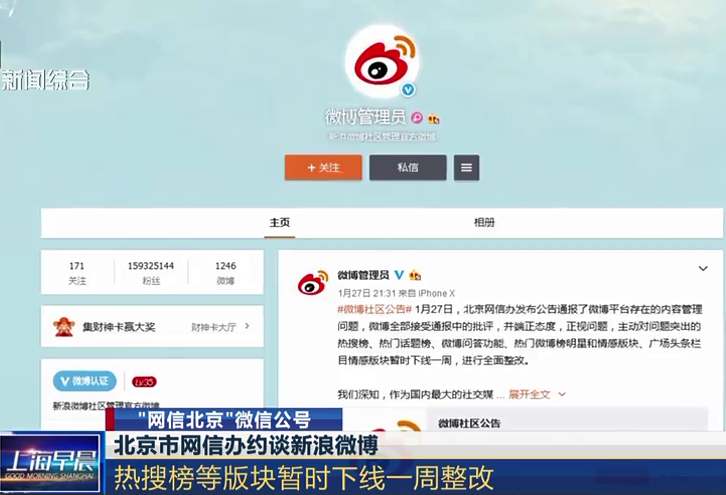 微博熱搜榜等版塊暫時(shí)下線一周整改
