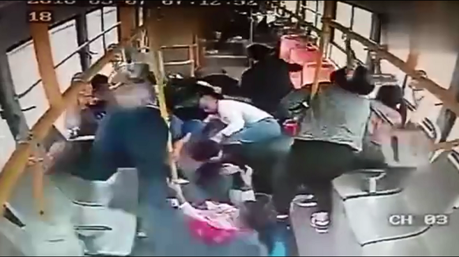 • 公交車未按定規(guī)??勘蛔肺?車內(nèi)乘客瞬間“亂飛”