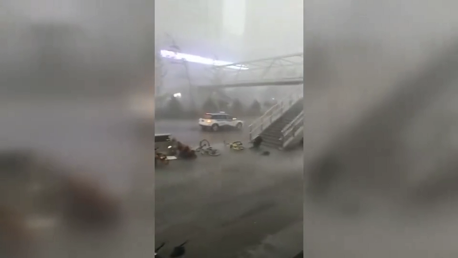 太原狂風(fēng)暴雨 一女子被風(fēng)吹倒從天橋樓梯滾落