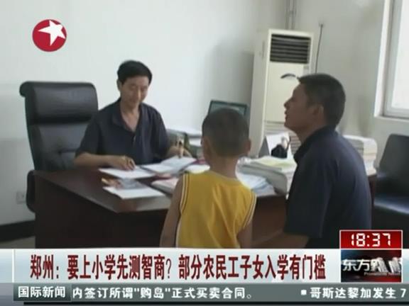 孩子要想接受義務教育,除了要辦齊各種手續(xù),還要進行智商測驗,開具醫(yī)院相關證明--這是來自河南南陽鄧州農(nóng)民工魏雙恒的8歲兒子航航在鄭州市建設路三小求學時遭遇的難題。