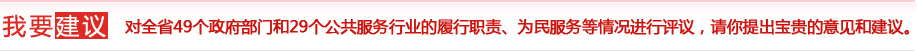 為貫徹落實(shí)黨中央、國務(wù)院關(guān)于加強(qiáng)作風(fēng)建設(shè)的指示精神和省政府關(guān)于"兩轉(zhuǎn)兩提"的要求,努力建設(shè)服務(wù)政府、責(zé)任政府、法治政府和廉潔政府,進(jìn)一步增強(qiáng)公共服務(wù)行業(yè)的服務(wù)意識,切實(shí)加強(qiáng)政風(fēng)行風(fēng)建設(shè),省政府糾風(fēng)辦繼續(xù)在全省各級政府部門和公共服務(wù)行業(yè)開展以"樹立優(yōu)良作風(fēng),構(gòu)建和諧中原"為主題的民主評議政風(fēng)行風(fēng)活動(dòng)。河南省人民政府糾風(fēng)辦委托映象網(wǎng)開通網(wǎng)上評議系統(tǒng),對全省49個(gè)政府部門和29個(gè)公共服務(wù)行業(yè)的履行職責(zé)、為民服務(wù)等情況進(jìn)行評議,請你提出寶貴的意見和建議。