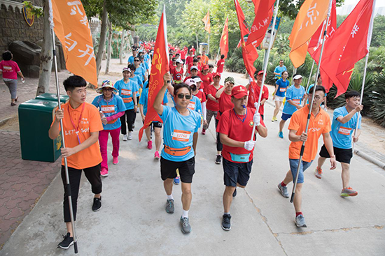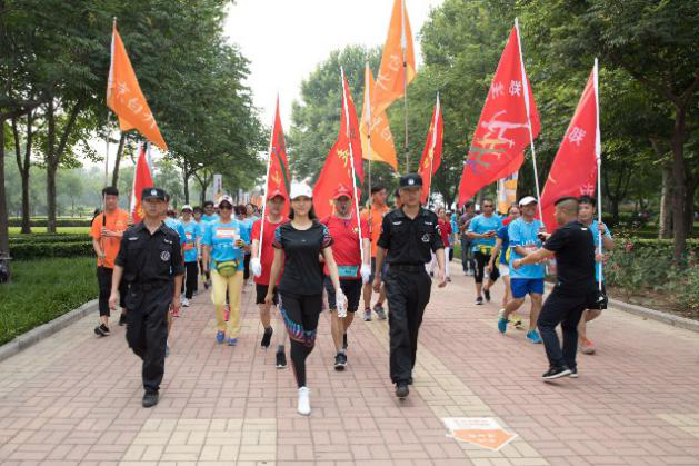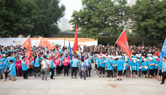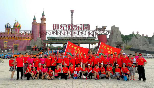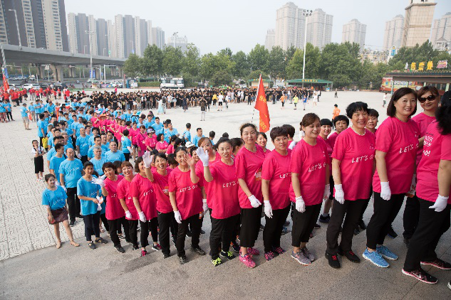 當天近6000位都市頻道鄭州站的忠粉,早7點就趕到世紀歡樂園,用健步的方式慶祝祖國的日益強盛。