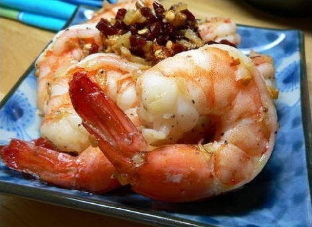 1、大蝦仁8到10只,去皮去沙線洗凈(尾巴上的蝦皮保留,看起來會(huì)好看些),蒜兩瓣兒,干紅辣椒4-5個(gè)。