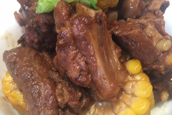 5.將挑出大料的排骨和玉米倒入鍋內(nèi),大火將湯汁收干即可。