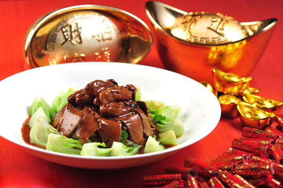 廣東人把年夜飯稱(chēng)為“團(tuán)年飯”,不但飯菜品種豐富,而且很講究意頭。一家人吃團(tuán)年飯前要先祭祖或拜神,香燭燒完才開(kāi)飯。席上一般有雞(寓有吉)、魚(yú)(寓年年有余)、蠔豉(寓好市)、生菜(寓生財(cái))、腐竹(寓富足)、蒜(寓會(huì)計(jì)算)等以求吉利。廣東有的地方在吃團(tuán)年飯時(shí),若有新婚夫婦,會(huì)多擺一副碗筷,取來(lái)年添丁吉意。