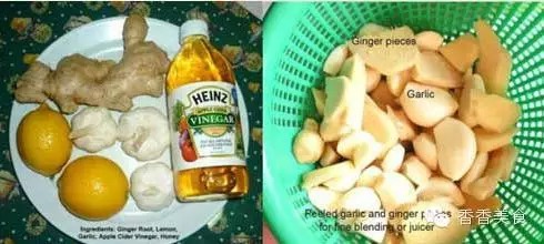 1 杯檸檬汁、1 杯姜汁、1 杯大蒜汁、1 杯蘋果醋