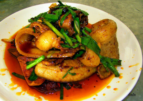 4:將切好的五花肉片放入炒鍋后加入配料一同進(jìn)行炒制,調(diào)味后我們的這道連山大刀回鍋肉就完成了。了解更多關(guān)于這道菜的細(xì)節(jié),您可一定要鎖定今晚的節(jié)目哦。