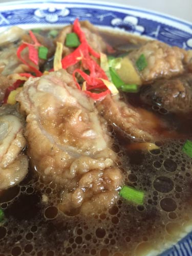 2、之后爆香蔥姜,下蠔油、海鮮醬、白糖,鹽調(diào)成湯汁;