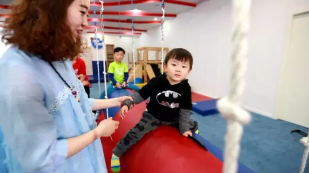 太空滑索、大熱狗秋千、攀巖、海洋池、秋千,別看一個小小的教室,它容納了500件不同的教具,看似是家長陪著寶寶玩,其實這些課程設(shè)計有豐富的意義,它讓孩子的體能心智都能得到提升。