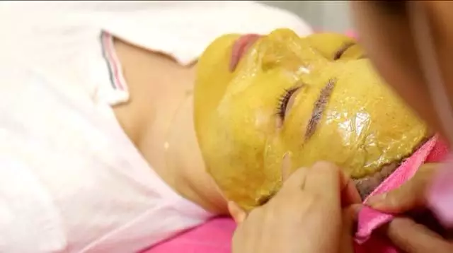 在涂抹面膜之前,工作人員會先用蜂蜜對顧客臉部進行按摩,蜂蜜的粘性可以防止皮膚水分蒸發(fā),按摩也促進了臉部的血液循環(huán),在按摩結(jié)束后,就可以涂抹面膜了。