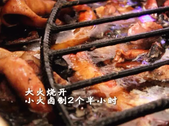 還有啥大料?這可是個秘密,據(jù)說這秘方可是他家獨有的,俗話說細(xì)節(jié)決定成敗,鹵料下鍋也要充分注意小細(xì)節(jié),肉皮朝下才能保證煮透并入味,上面還要蓋上鐵篦子和長石條,保證肉類能充分浸泡在老湯中。