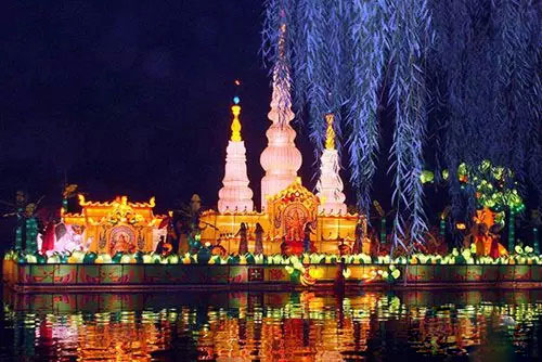 漢明帝永平年間(公元58--75),因明帝提倡佛法,適逢蔡愔從印度求得佛法歸來(lái),稱印度摩喝陀國(guó)每逢正月十五,僧眾云集瞻仰佛舍利,是參佛的吉日良辰。漢明帝為了弘揚(yáng)佛法,下令正月十五夜在宮中和寺院"燃燈表佛"。此后,元宵放燈的習(xí)俗就由原來(lái)只在宮廷中舉行而流傳到民間。即每到正月十五,無(wú)論士族還是庶民都要掛燈,城鄉(xiāng)通宵燈火輝煌。