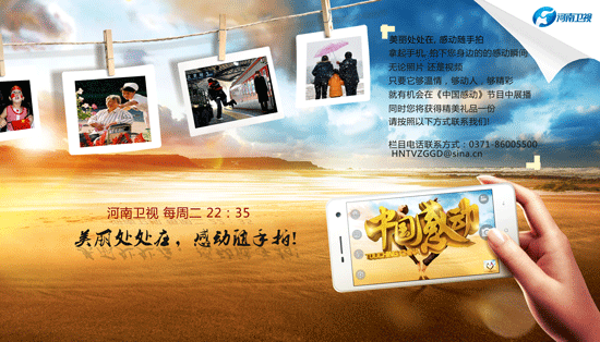 生活中某些情景在瞬間即能帶來(lái)感動(dòng),它適于簡(jiǎn)潔有力地表現(xiàn)。感動(dòng)隨手拍邀請(qǐng)您遇到生活的感動(dòng)瞬間,或樂(lè)于助人,或見(jiàn)義勇為,或甘于奉獻(xiàn),甚至只是讓你有所觸動(dòng)的溫情瞬間,請(qǐng)隨手拍下照片或者視頻。河南衛(wèi)視《中國(guó)感動(dòng)》欄目將在結(jié)尾以集錦的形式播出。一旦被節(jié)目選上 登上節(jié)目播出就會(huì)有獲獎(jiǎng)資格。