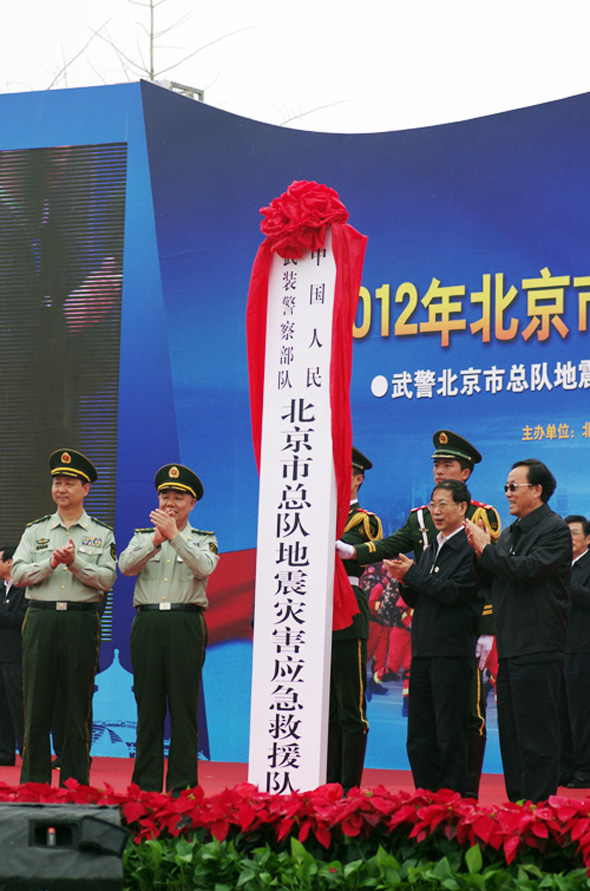 《人民武警報(bào)》報(bào)道(漆錫、邢佩偉)5月12日是我國(guó)第四個(gè)“防災(zāi)減災(zāi)日”。上午,武警北京地震災(zāi)害應(yīng)急救援隊(duì)成立儀式在京舉行。北京市市長(zhǎng)郭金龍,武警部隊(duì)政委許耀元、參謀長(zhǎng)牛志忠及北京總隊(duì)有關(guān)領(lǐng)導(dǎo)出席。