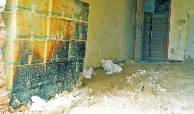 涉事民房地面上有白色的粉末狀不明物質(zhì)