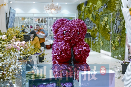 商戶陳玉稱,七夕的主角還是紅玫瑰。“去年流行‘抱抱桶’,今年流行‘抱抱熊’?!鄙虘艉纹G威稱,“抱抱熊”是用紅玫瑰制作的,這種玫瑰不是鮮切花,而是皂花,幾乎和真玫瑰一樣,但比真花更耐放,只要不碰水,能放兩年左右。