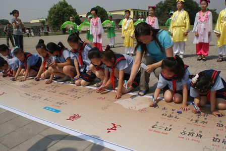 近日,由安陽殷墟管理處、殷都區(qū)甲骨文少兒學(xué)校主辦的少兒甲骨文書法比賽在殷墟管宮殿宗廟遺址前廣場舉行。這一活動的主題為"傳承甲骨文明,夸家鄉(xiāng)安陽",中國小屯教育集團(tuán)、安陽實驗小學(xué)等學(xué)校的100余明愛好甲骨文書法的學(xué)生參加了這一活動。